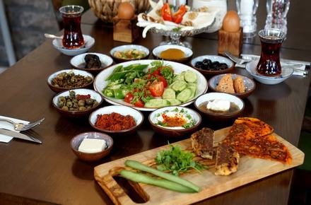 Taptaze ve zengin kahvaltı çeşitleri, 1870’s Taş Konak Otel’in sıcak atmosferinde tam bir sabah ziyafetine dönüşüyor. Bu nezih işletmede iştahlar kabarıyor, sabahlar keyifleniyor.