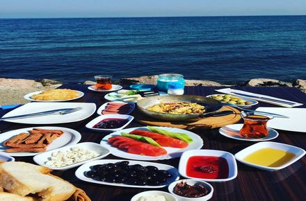 12 Eylül 2020İnadına Fasıl Denizin maviliğini ve tüm güzelliklerini gözler önüne seren muhteşem bir mekân bizim kahvaltılarımızın neden bu kadar zengin olduğunu dünyaya daha iyi anlatıyor. Çünkü bu şekilde bir görünüm karşısında iştahımız açılıyor…