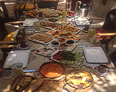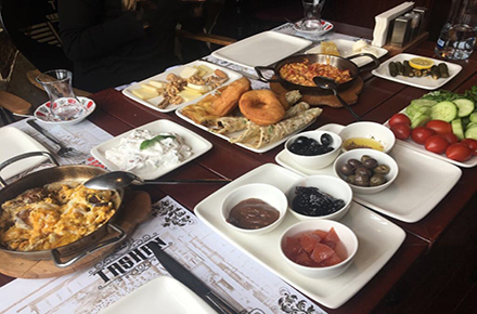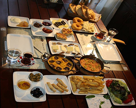 Sucuklu Yumurta, Menemen, Pişi, Saç Böreği, Kıymalı Su Böreği, Patates Kızartması, Sigara Böreği. Yaprak Sarma, Kars Kaşarı, İzmir Tulum Peyniri, Ezine Peynir, Siyah Zeytin, Yeşil Zeytin, Baharatlı Zeytinyağı Sos, Domates, Salatalık, Roka Maydanoz, Cacık, Ceviz, İncir, Çikolata, Ev Yapımı Reçeller ( Erik Reçeli, Kayısı Reçeli ) Bal, Tereyağ, Sınırsız Çay, Türk Kahvesi Bulunmaktadır…
