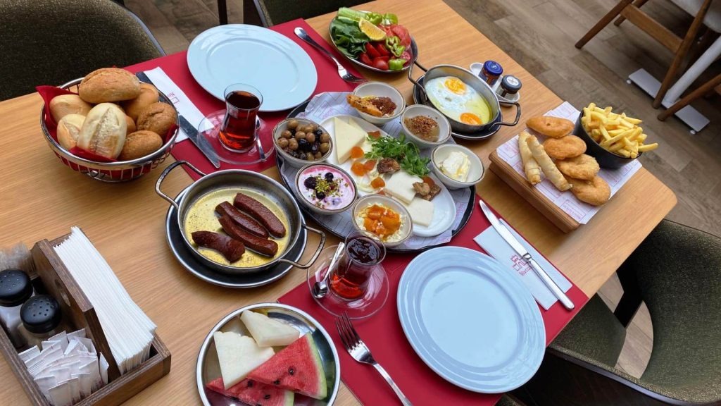 Kahvaltı menüsü, zengin seçenekler sunarak misafirlerine çeşitli lezzetler tatma imkanı tanıyor. Taze ekmekler, peynir çeşitleri, zeytin, domates, salatalık gibi klasik Türk kahvaltısı unsurlarının yanı sıra, omlet ve diğer sıcak seçenekler de mevcut. Ayrıca, organik ürünlere de yer vererek sağlıklı bir kahvaltı deneyimi sağlıyorlar.